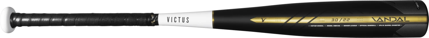 Engineered with an ultra-balanced design and carbon composite barrel-end, this one-piece aluminum hybrid bat boasts faster exit speeds through the zone. The Vandal combines a ringless barrel, made of Multi-Variable walls for a more flexible sweet spot, with a pro-tapered handle and micro-perforated soft-touch grip for the unmatched performance we all expect from a Victus Bat.Â